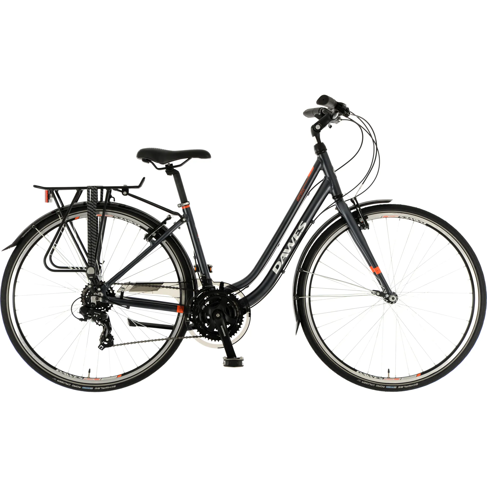 The adjustable handlebar stem allows you to easily adapt your riding position whilst the Schwalbe puncture resitant tyres allow you to keep on riding without the worry of a flat. The Shimano chainset and 21 speed gears take care of the transmission and, our very own comfort saddle coupled with a micro adjust seatpost add even further adjustablility, you're sure to be set for a long and comfortable ride, whatever the conditions.